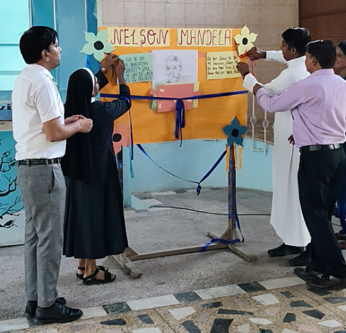 Nelson Mandela Day was celebrated in the school with great enthusiasm and respect. The event began with a warm welcome by a student, highlighting the significance of the day