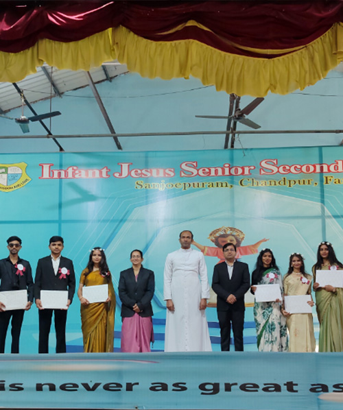 On 22nd May 2025, Infant Jesus Sr. Sec. School hosted a heartfelt and memorable ceremony at Christ Hall, themed “Saluting Dedication, Embracing New Direction,” to bid farewell to Sr. Remya and welcome the new Vice Principal, Sr. Arpita. The event began with a serene prayer song by the school choir, followed by the symbolic lighting of the lamp by dignitaries. Ms. Karishma delivered a warm welcome address, after which a touching dance by the girls reflected deep gratitude. A video tribute captured Sr. Remya’s impactful journey, while a moving skit by teachers and students, including a special dance sequence, honored her pivotal role. Tokens of love were presented during the Offering and Greeting session, after which Sr. Remya shared an emotional farewell speech, and Sr. Arpita introduced herself with enthusiasm and humility. A lively aerobics session led by Mr. Parveen energized the audience, followed by the felicitation of CBSE Toppers of Classes 10 and 12 by Ms. Jaishree. The Director concluded with a glowing tribute to Sr. Remya and a warm welcome to Sr. Arpita. The program ended with a sincere vote of thanks by Ms. Grace, marking the day as a perfect blend of celebration and emotion—a true tribute to the past and a warm embrace of the future.