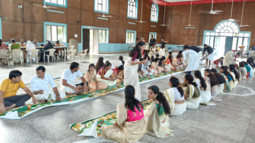 Later, the Onam part of the celebration included teachers participating in dances and games, followed by a festive meal. The occasion was full of joy, respect, and togetherness among students and teachers.